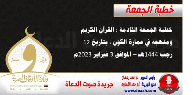 خطبة الجمعة الموافق 3فبراير 2023….منهج القرآن في العمران هُوَ أَنْشَأَكُمْ مِنَ الْأَرْضِ وَاسْتَعْمَرَكُمْ فِيهَا