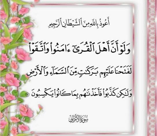 بالإيمان والتقوي تنزل البركات من السماء قال تعالى “{وَلَوْ أَنَّ أَهْلَ الْقُرَى آمَنُوا وَاتَّقَوْا لَفَتَحْنَا عَلَيْهِمْ بَرَكَاتٍ مِنَ السَّمَاءِ وَالْأَرْضِ وَلَكِنْ كَذَّبُوا فَأَخَذْنَاهُمْ بِمَا كَانُوا يَكْسِبُونَ (96)} [الأعراف: 96]