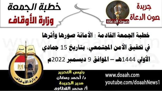 خطبة الجمعة الموافق 9ديسمبر2022….الأمانــــــــــــــــــــــــــــــــــــــــــــــــــــــــــــــــــــة صورها وأثرها في تحقيق الأمن المجتمعي