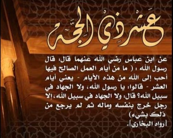 عَنْ جَابِرِ بْنِ عَبْدِ اللهِ قَالَ: قَالَ رَسُولُ اللهِ ﷺ : ” إِنَّ أَفْضَلَ أَيَّامِ الدُّنْيَا أَيَّامُ الْعَشْرِ “، قَالُوا: يَا رَسُولَ اللهِ , وَلَا مِثْلُهُنَّ فِي سَبِيلِ اللهِ؟ , قَالَ: ” وَلَا مِثْلُهُنَّ فِي سَبِيلِ اللهِ , إِلَّا مَنْ عَفَّرَ وَجَهَهُ فِي التُّرَابِ ”