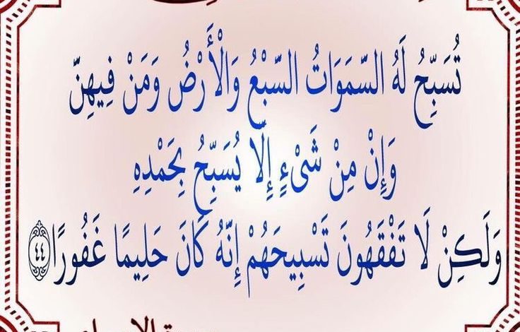 “تسبح له السماوات السبع والأرض ومن فيهن، وإن من شيءٍ إلا يسبح بحمده ولكن لا تفقهون تسبيحهم، إنه كان حليما غفورا”