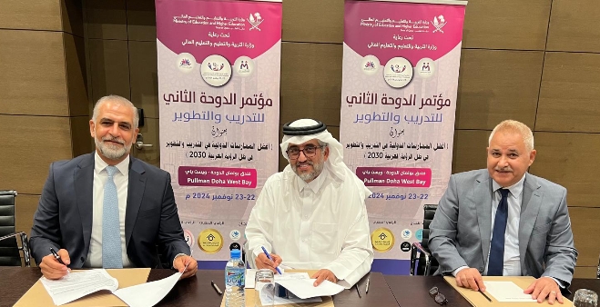 وقع البروفيسور الدكتور درع معجب الدوسري رئيس الإتحاد الدولي للتدريب والتطوير ورئيس مؤتمر الدوحة الثاني للتدريب بروتوكول تعاون مع المهندس إيهاب فائق برغوث المدير العام لفنادق بولمان الدوحة لاستضافة مؤتمر الدوحة الثاني للتدريب والتطوير.