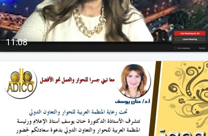 انعقد الصالون الثقافي للأستاذة الدكتورة حنان يوسف في دورته الرابعة والثلاثون من خلال تطبيق (زووم)عبر منصات التواصل الاجتماعي للمنظمة “”..