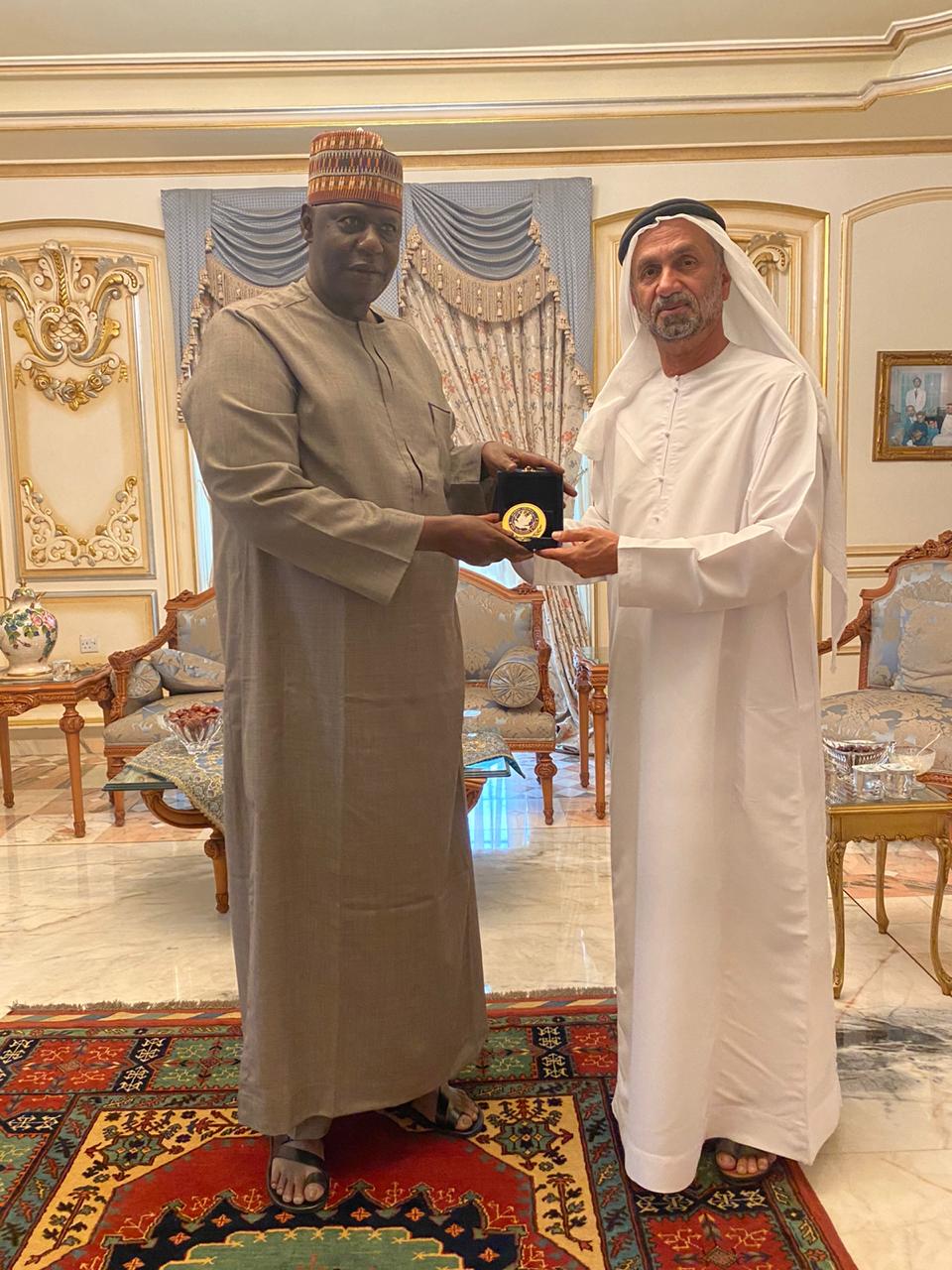 استقبل رئيس المجلس العالمي للتسامح والسلام معالي أحمد بن محمد الجروان رئيس برلمان جمهورية النيجر كويسيني تيني والوفد المرافق له، مقيماً لهم مؤدبة غداء بمنزله بدولة الامارات العربية المتحدة ، وبحضور السفير أغادا غاربا سفير جمهورية النيجر لدى دولة الإمارات العربية المتحدة .