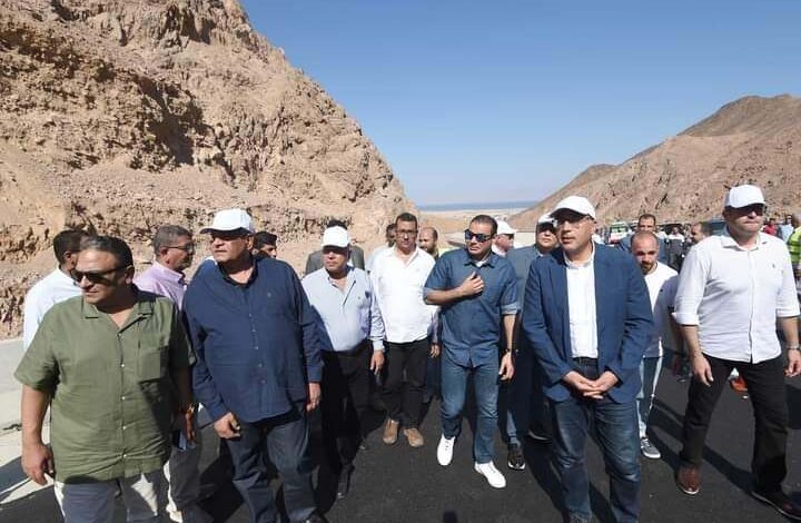 رئيس الوزراء يتفقد أعمال تطوير ورفع كفاءة طريق دهب-نويبع