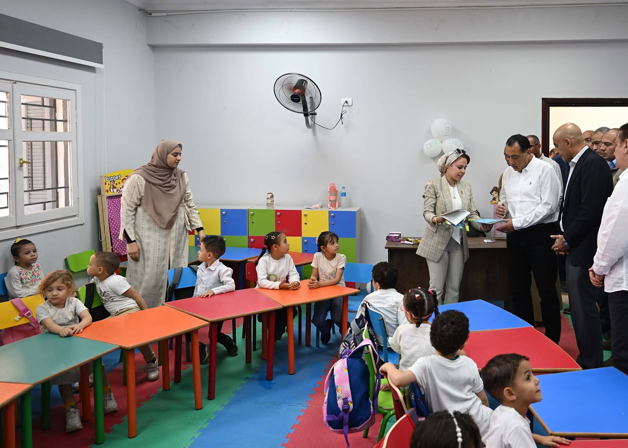 واستمع رئيس الوزراء إلى شرح من الدكتورة/ أمل غنيم، مديرة مركز تنمية الأسرة والطفل، التي أوضحت أن المركز يشمل عدد 6 فصول؛ مُقسمة بواقع 3 فصول حضانة للأطفال في المرحلة العمرية من 2 وحتى 4 سنوات، و3 فصول رياض الأطفال للمرحلة العمرية من 4 وحتى 6 سنوات.