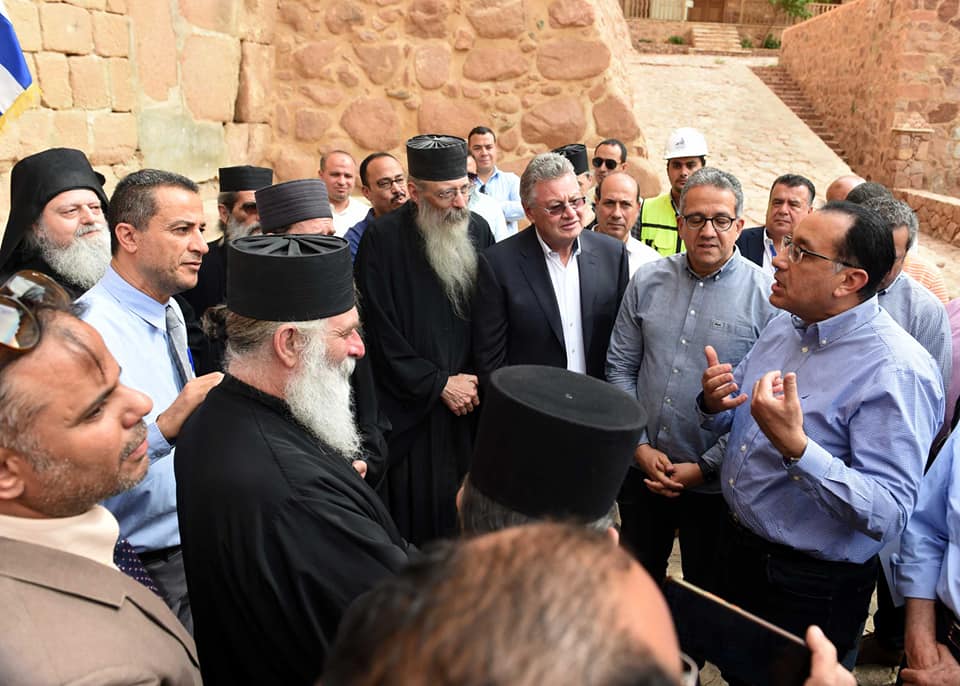 وزار مدبولى دير سانت كاترين، وقام بجولة في أقسامه، وتحدث مع الآباء في الدير، حول رؤية التطوير للمنطقة، مؤكداً الحرص على ان تحافظ اعمال التطوير على طبيعة المنطقة ورونقها، وكذا الجانب الروحاني بها.