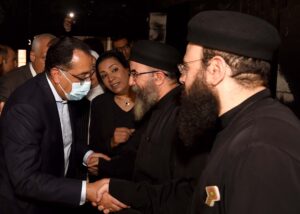 تفقد الدكتور مصطفى مدبولي، رئيس مجلس الوزراء، كنيسة الشهيد “أبى سيفين” في منطقة المنيرة بمحافظة الجيزة؛ للوقوف على تطورات موقف الحادث المؤلم، والحريق الذي وقع صباح اليوم الأحد 14 أغسطس 2022 بالكنيسة، يرافقه الدكتور خالد عبدالغفار، وزير الصحة والسكان، والسيدة/نيفين القباج، وزيرة التضامن الاجتماعي، واللواء هشام آمنة، وزير التنمية المحلية، واللواء أحمد راشد، محافظ الجيزة، وعدد من قيادات وزارة الداخلية، وقساوسة الكنيسة.