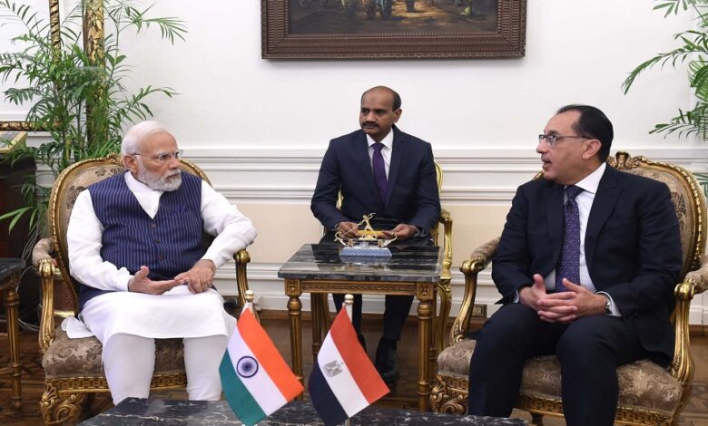 رئيس الوزراء يعرب عن تطلع مصر لإرساء علاقة إستراتيجية مع الهند