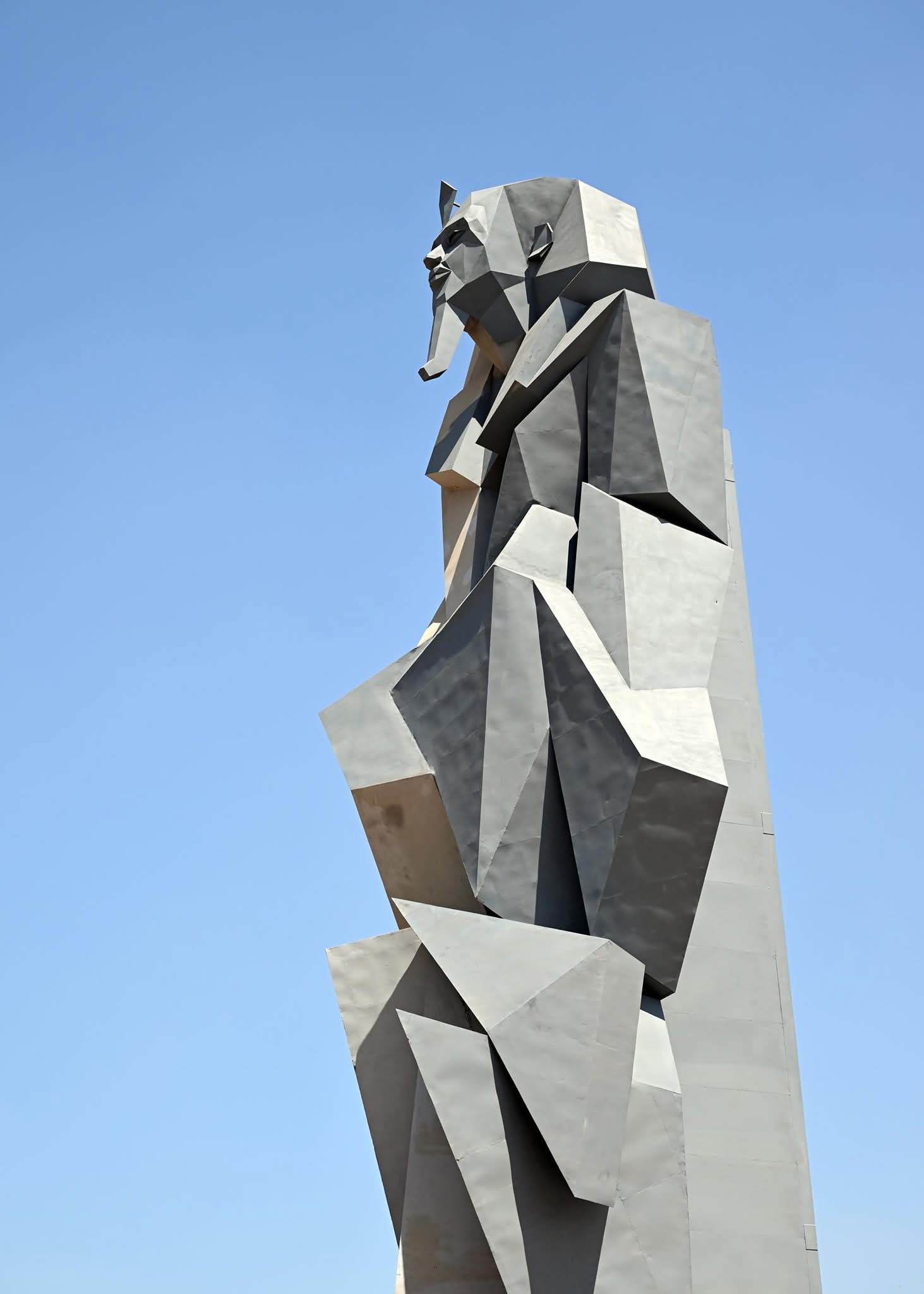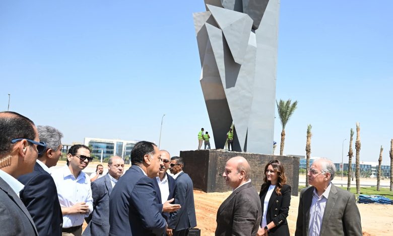وبدأ الدكتور مصطفى مدبولي جولته، بالوقوف عند منطقة “التمثال الجديد” عند مدخل طريق القاهرة الإسكندرية المُؤدي للمتحف المصري الكبير بالقرب من بوابة الرسوم، حيث تمت الإشارة إلى أنه تم تنفيذ التمثال وتصميمه تحت إشراف الدكتور طارق صبحي، استشاري المشروع، ضمن جهود تطوير المنطقة المحيطة بالمتحف، وأنه يُعد “قطعة فنية” تُعبر عن البيئة المحيطة، حيث انه مُستوحى من الحضارة المصرية القديمة، وتم تصميمه ببراعة من خلال مراعاة الدمج بين الفن المصري القديم والفن الحديث المعاصر، إلى جانب التنويه إلى الانتهاء من أعمال صب الخرسانة، والانتهاء من تركيب التمثال على القاعدة، وجار الانتهاء من أعمال اللحامات وتركيب الرخام، كما تمت الإشارة إلى الانتهاء من أعمال زراعات النخيل بنسبة 100% ، وجار البدء في “أعمال الكهرباء”، حيث تم توريد كشافات النخيل بنسبة 100 %، حيث وجه رئيس الوزراء بسرعة الانتهاء من تنفيذ أعمال الإنارة وتوفير الإضاءة اللازمة للتمثال، وكذلك الانتهاء من أعمال تسوية وتمهيد المنطقة المتواجد بها التمثال.