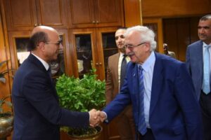 جاء ذلك خلال استقباله اليوم الأحد ٦ نوفمبر ٢٠٢٢ للدكتور جمال عميرة أستاذ جراحة الأورام بالمعهد القومى للأورام بجامعة القاهرة ووكيل نقابة الأطباء والدكتورة مها غانم نائب رئيس جامعة أسيوط لشئون خدمة المجتمع وتنمية البيئة والدكتور سامى عرفان عميد معهد جنوب مصر للأورام السابق والدكتور محمد أبو المجد وكيل معهدجنوب مصر للاورام لشئون خدمة المجتمع وتنمية البيئة والدكتور ابراهيم ابوالعيون مدير عام مستشفى الاورام .ولفيف من أساتذة جراحة الأورام الدكتور هشام محمود حمزة والدكتور محمود الشعيبى والدكتور على زيدان والدكتور بدوى محمد أحمد بمعهد جنوب مصرللأورام جامعة أسيوط والدكتور حسين الخياط أستاذ جراحة القلب والصدر بجامعة أسيوط والأستاذ شوكت صابر أمين عام جامعة أسيوط.