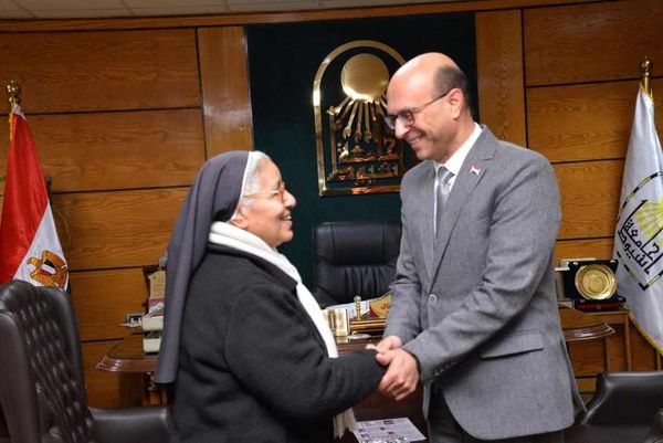 في لفتة إنسانية استقبل الدكتور أحمد المنشاوى رئيس جامعة أسيوط اليوم الإثنين مُعلمته خلال المرحلة الإبتدائية السير لوريس إسحاق الراهبة بمدرسة راهبات القديس يوسف بالمنيا والتي حضرت إليه بمكتبه في زيارة حملت العديد من معاني الأخلاق والتربية والإنسانية
