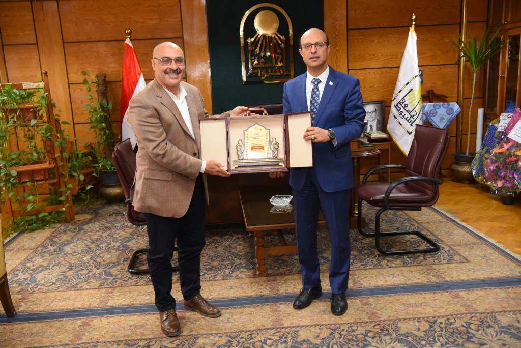 من جهة اخرى استقبل الدكتور أحمد المنشاوى رئيس جامعة أسيوط  الدكتور عماد سمير عميد كلية التربية الرياضية ، وذلك لإهداء سيادته درع   المؤتمر العلمي الدولي لكلية التربية الرياضية  “الرياضية العالمية و تحديات الألفية الثالثة ”  وذلك تقديراَ لحرصه على دعم ورعاية المؤتمر، و الذى نظمته  الكلية بالتعاون  مع كلية العلوم الرياضية بجامعة ماغديبورغ بألمانيا خلال شهر  مارس الجاري  بمدينة الغردقة ،برعاية   الدكتور أيمن عاشور  وزير التعليم العالي و البحث العلمي، والدكتور أشرف صبحي وزير الشباب و الرياضة  والدكتور أحمد المنشاوى رئيس جامعة أسيوط.