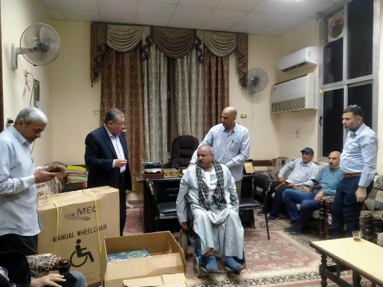 رئيس مدينة القوصية يسلم مواطن كرسي متحرك