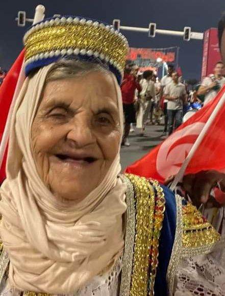 والأم عائشة برغم سنها الكبير واعتمادها في تحركها علي كرسي متحرك إلا انها تصر علي الحضور خلال البروفات ، من أجل تشجيع منتخب بلادها في بطولة كأس العالم لكرة القدم، وخطفت السيدة التونسية الأنظار، خلال التكريم حيث اصطفوا أمامها عدد من الجمهور التونسي للترحيب بها.