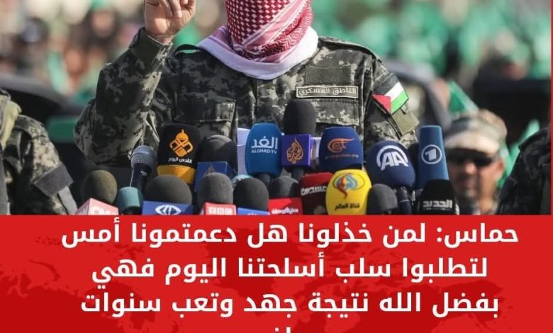 رد علي الدول التي تطالب بتسليم سـلاحها لإسرائيل….المقاومة حق وطني يفرضه وجود الاحتلال..