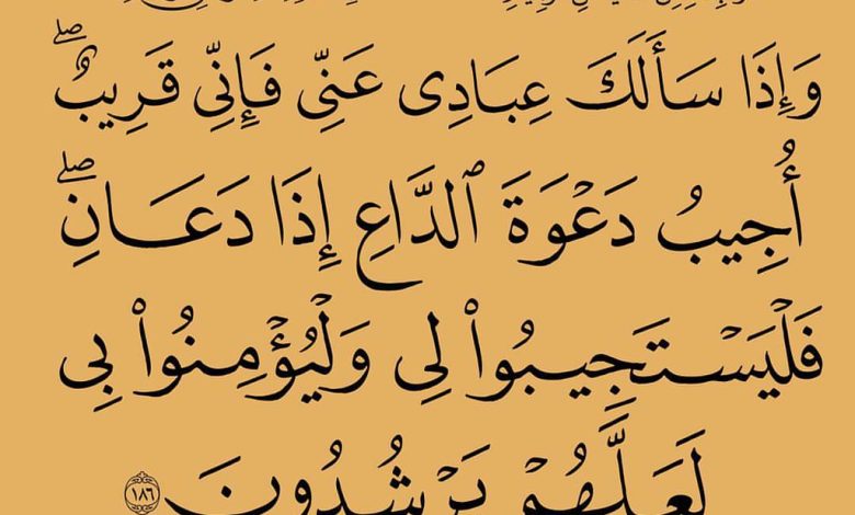 “وَإِذَا سَأَلَكَ عِبَادِي عَنِّي فَإِنِّي قَرِيبٌ، أُجِيبُ دَعْوَةَ الدَّاعِ إِذَا دَعَانِ” (البقرة: 186)