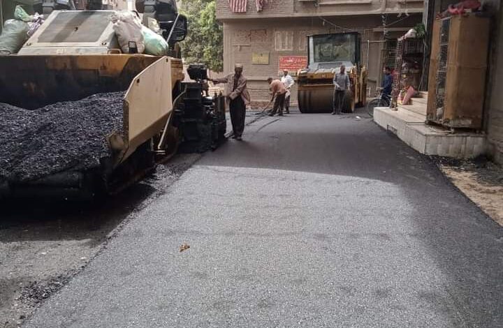 رصف شوارع منطقة الشادر بحي غرب أسيوط ضمن خطة التطوير والتجميل