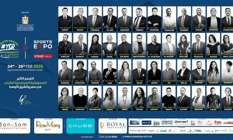 تنطلق فعاليات النسخة الرابعة من مؤتمر المسؤولية المجتمعية للشباب ضمن معرض Sports Expo، غدا الاثنين وتستمر خلال الفترة من 24 إلى 26 فبراير الجاري، في مركز مصر للمعارض الدولية بالقاهرة الجديدة، وذلك تحت رعاية الرئيس عبد الفتاح السيسي، رئيس الجمهورية، والدكتور مصطفى مدبولي، رئيس الوزراء، والدكتور أشرف صبحي، وزير الشباب والرياضة.