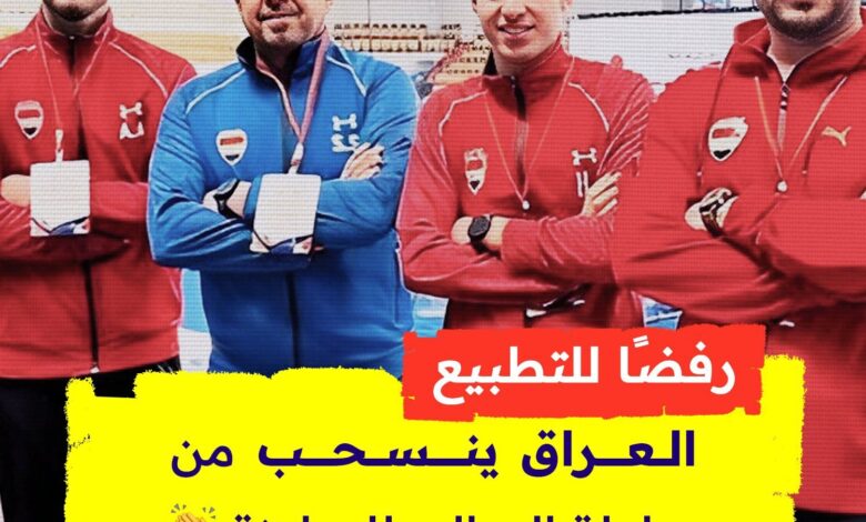 وقال الاتحاد العراقي للمبارزة في بيان رسمي : “قرار الانسحاب يأتي التزامًا بقانون تجـــ.ريم التطبيــ.ع الذي أقره البرلمان، ورفضًا للكيــان المُحتــل، وتضامنًا مع القضية الفلسطينية.