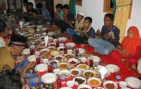 ومن أبرز العادات القمرية -أيضاً- تنظيم حلقات الإفطار الجماعية في المساجد، حيث يتشارك الجميع الطعام، وبعد صلاة التراويح يجتمع الناس في حلقات للسهر والاستماع إلى الدروس والمحاضرات الدينية ، بينما تغلق الكازينوهات والملاهي الليلية في جميع أنحاء البلاد بأمر من السلطات الحكومية.