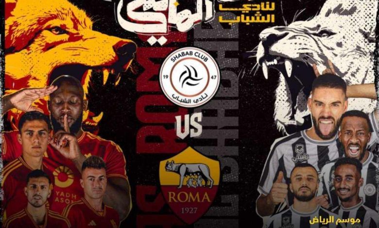 ضمن فعاليات موسم الرياض 2023 يلتقي نادي الشباب السعودي بضيفه نادي روما الإيطالي، في مباراة دولية ودية , في احتفالية اليوبيل الماسي للنادي السعودي الملقب بـ “الليوث”.