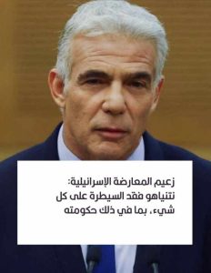 يائير لابيد : الحرب ستستمر ما دامت حكومة نتنياهو قائمة وفهم لا يريدون جلب السلام
