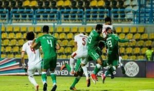 وفي الدقيقة الرابعةيتألق محمد عواد حارس مرمى الزمالك ويتصدى لتصويبة أحمد عادل ميسي.