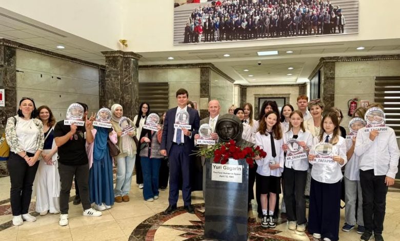 نظم البيت الروسي بالقاهرة بالتعاون مع المدرسة الروسية التابعة لسفارة روسيا في مصر وبالتنسيق مع وكالة الفضاء المصرية زيارة الي تمثال رائد الفضاء الروسي يوري جاجارين بمناسبة الاحتفال باليوم العالمي للفضاء ، تقدم الوفد الروسي ارسيني ماتيوشينكو القائم بأعمال مدير المراكز الثقافية الروسية في مصر، وفاليري بريبيتكوف مدير المدرسة الروسية بالقاهرة، وداريا بوتشاروفا كبير الاخصائيين بالمركز الروسي.