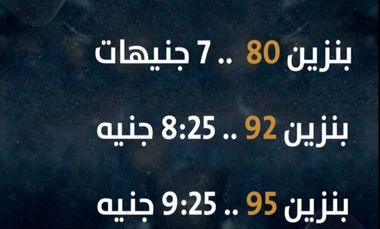 حيث جاءت الأسعار الجديدة كالتالى: بنزين 80 بـ7 جنيهات للتر، و8.25 جنيهات للتر البنزين 92، و9.25 جنيهات للتر البنزين 95، فيما تم تثبيت سعر السولار عند 6.75 جنيهات للتر