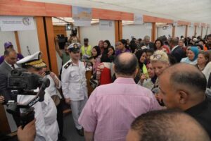 تفقد المحافظ ومرافقوه فى بداية زيارته للمبادرة المقامة بمقر مركز شباب قرية الشامية بمركز ساحل سليم فعاليات المبادرة والتقيا بعض الفتيات المشاركات فى مبادرة نوارة