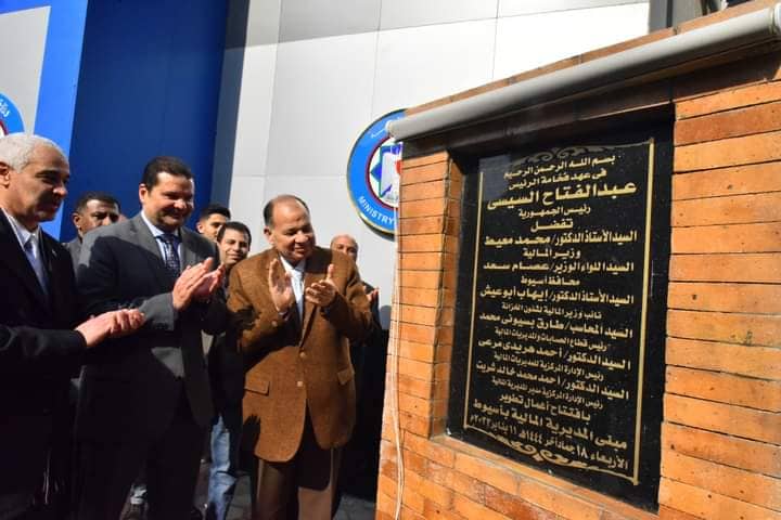 حيث ازاح نائب وزير المالية ومحافظ أسيوط الستار عن اللوحة التذكارية للمبنى ثم تفقدوا أعمال التطوير التي تمت بديوان عام المديرية المالية وأقسامها المختلفة عن طريق جهاز تعمير وسط وشمال الصعيد