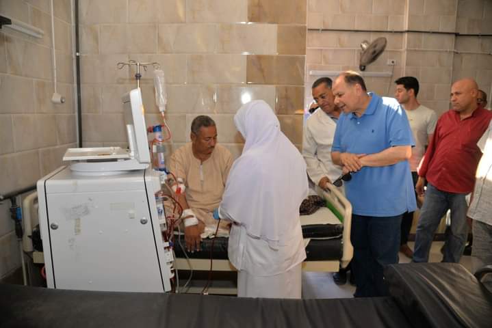 جولته بالقرية بتفقد سير العمل بوحدة الكلى الصناعي بالقرية والذي تم نقل جميع مرضى الغسيل الكلوي به لحين الانتهاء من انشاء مستشفى ساحل سليم النموذجي الجديد خلال الأشهر القادمة واطمئن على حالة المرضى بالوحدة التي يبلغ عدد الأجهزة بها حوالي 22 جهاز وتخدم 112 مريض موجهًا بتقديم كافة أوجه الخدمة الطبية للمرضى.