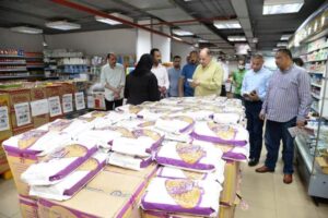وحيث تفقد محافظ أسيوط ومرافقوه معرض ومنفذ سلسلة خير زمان بمنطقة نزلة عبداللاه لبيع السلع الغذائية واللحوم واستمع محافظ أسيوط إلى شرح من المدير المسئول لأسعار السلع الغذائية الاساسية مثل الفول والعدس والألبان والجبن الأبيض والمكرونة والسكر وزيت الطعام، والأرز بالإضافة إلى اللحوم والدواجن والتي تم تخفيض أسعارها بالمقارنة بمثيلاتها بالخارج مشيدًا بجودة المنتجات المعروضة