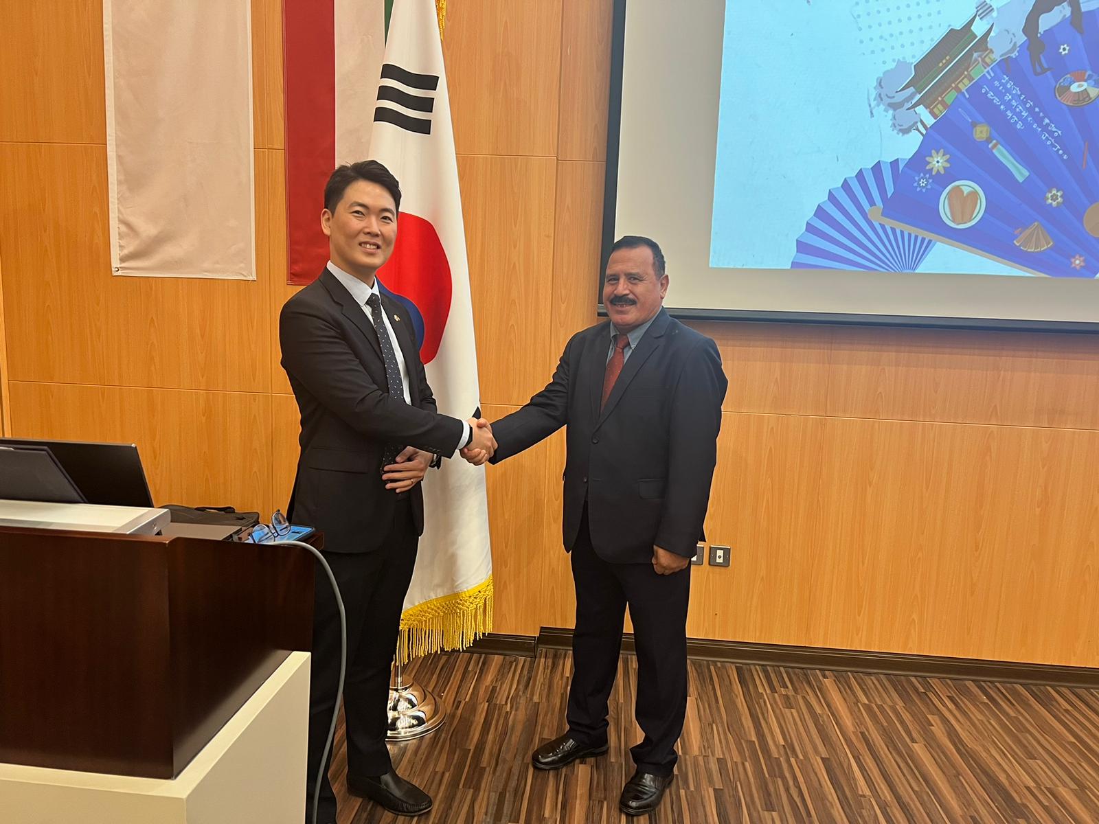 القنصل الكوري السيد جينكوك لي يرحب بالصحفي سيد غريب مراسل جريدة وضوح