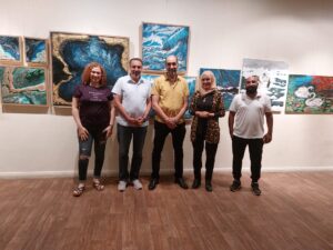 رسالة تحذير شديدة وجهتها سفيرة المناخ الفنانة التشكيلية ” اسماء عادل السيد ” الي شعوب العالم من خلال 72 لوحة فنية في معرضها ” كوكبنا في خطر ” الذى اقيم بقاعة ادم حنين بمركز الهناجر الذى شاهد اهتماما كبيرا على مستوى الدوائر الرسمية والثقافية , حيث افتتح المعرض الوزير المفوض بجامعة الدول العربية السفير حيدر الجبوري , ود. حسام الدين محمود رئيس مركز افريقيا للتخطيط الاستراتيجي والخبير الدولى في السياسات المناخية , ود . محمود برعى رئيس منتدى الحوار الوطنى اصدقاء المناخ .