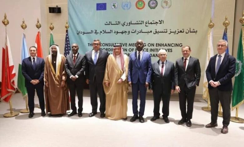 وأعرب الاجتماع التشاورى عن قلقه البالغ إزاء استمرار الأعمال القتالية فى السودان، وما يترتب عليها من تأثيرات مدمرة على الشعب السودانى ويفاقم الوضع الإنسانى الكارثى أصلاً، بما فى ذلك ما يربو على 11 مليون نازح و3 ملايين لاجئ ناهيك عن أزمة الغذاء.