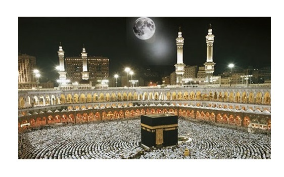 سماء مكة المكرمة تشهد تعامد القمر على الكعبة المشرفة