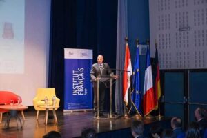 السياسات والتكنولوجيا والحلول المجتمعية” تحت رعاية السفارتين الألمانية والفرنسية في مصر بمقر المعهد الفرنسي بالقاهرة .