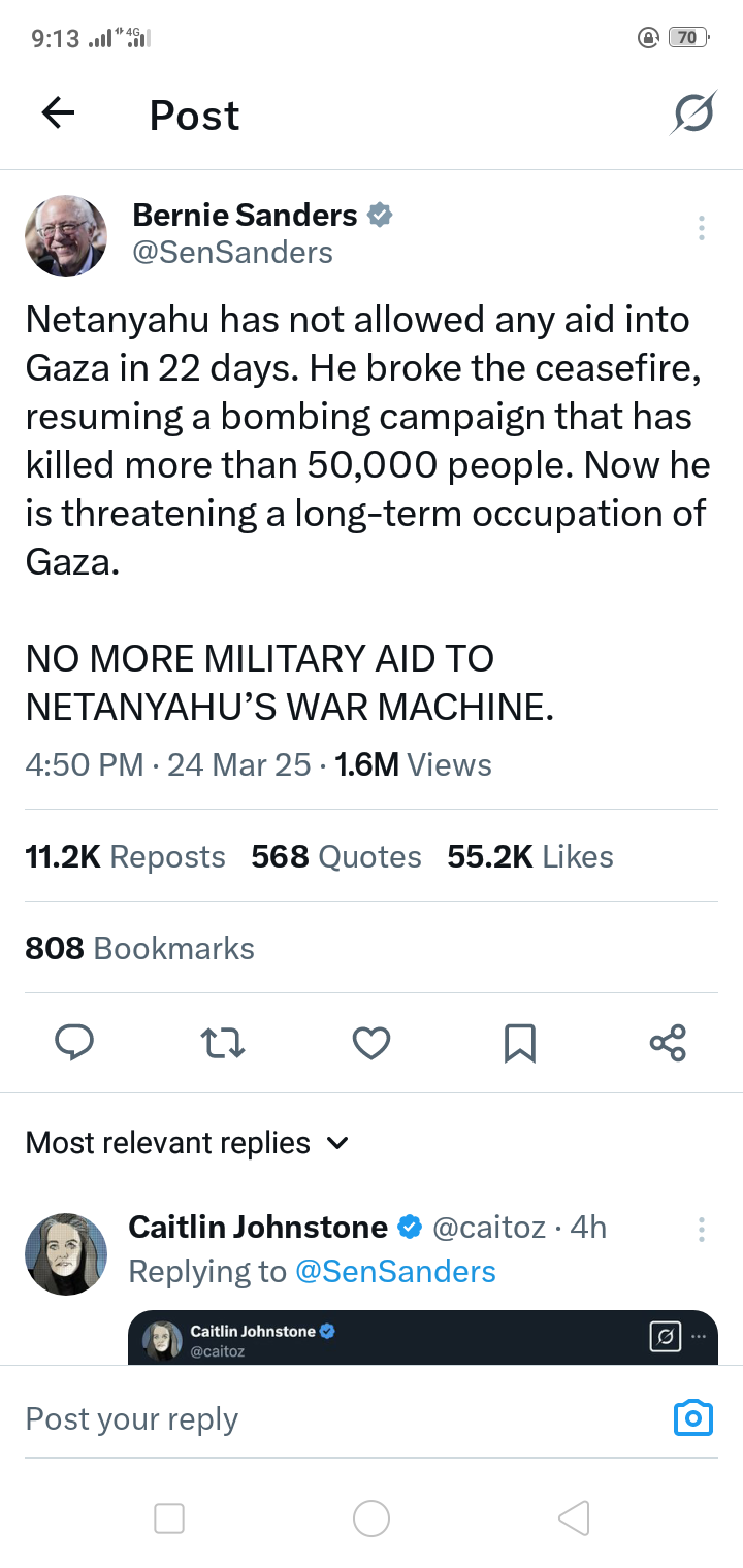 وفي منشور له عبر ساندرز وفي عبر منصة “إكس”، الاثنين، أكد أن نتنياهو أعاد إطلاق “حملة القصف” التي تسببت في مقتل أكثر من 50 ألف شخص، وذلك بعد أن خرق وقف إطلاق النار.