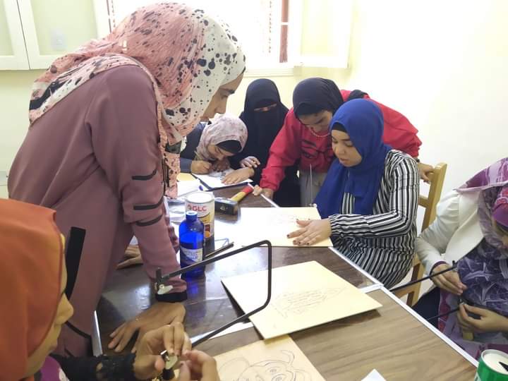 شباب أسيوط تنظم ورشه فنية لتعليم صناعة الاركيت بمركز شباب كوم بوها