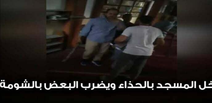 شخص يعتدى على المصلين داخل المسجد .. فيديو..