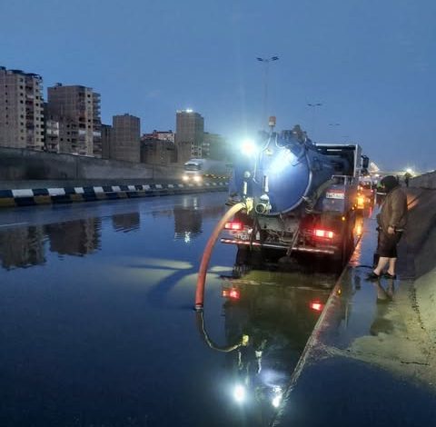 شركة مياه القليوبية تواصل رفع تجمعات الأمطار لضمان السيولة المرورية