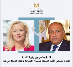 جاء ذلك خلال اتصال هاتفي أجراه وزير الخارجية ، اليوم الجمعة 17 مايو ، مع سيجريد كاخ كبيرة منسقي الأمم المتحدة للشئون الإنسانية وإعادة الإعمار في قطاع غزة.
