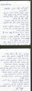 كتبت إحدى الأسيرات الإسرائيليات تدعى “دانيا ألوني ” التي كانت لدى “كت.ائب القـ،ـسام” رسالة بخط اليد وباللغة العبرية، وجهتها للقسام ونشرها الإعلام العسكري للكتائب .