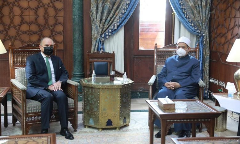 استقبل فضيلة الإمام الأكبر أ.د/ أحمد الطيب، شيخ الأزهر الشريف، اليوم الخميس 4 مارس 2021، بمقر مشيخة الأزهر، السيد أمجد العضايلة، سفير المملكة الأردنية بالقاهرة، مندوب الأردن لدى جامعة الدول العربية.