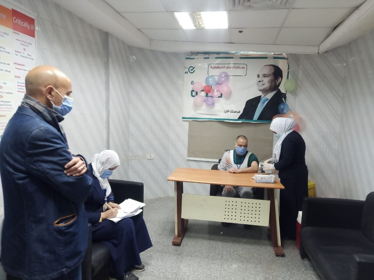 الذين اعربوا عن سعادتهم وتقديرهم لجهود الدولة المبذولة، للحفاظ علي جميع المواطنين بدءاً من خط الدفاع الأول من كتائب الجيش الأبيض في مواجهة كوفيد 19، والمواطنين أصحاب الأمراض المزمنة، وكبار السن، والأكثر عرضه للإصابة بفيروس كورونا، مجاناً وفقاً لتوجيهات فخامة الرئيس عبد الفتاح السيسي رئيس الجمهورية.