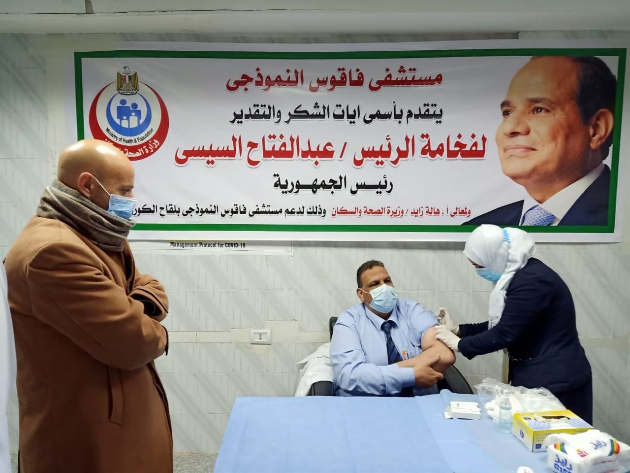 وقام الدكتور هشام شوقي مسعود بمتابعة تطعيم الفرق الطبية بقسم العزل بمستشفي فاقوس النموذجي، بالجرعة الثانية للقاح فيروس كورونا المستجد كوفيد١٩، وأشرف بنفسه علي قياس العلامات الحيوية للفرق الطبية قبل الحصول علي الجرعة الثانية، ومن المتوقع أن يتم اليوم تطعيم ١١٨ من الكوادر البشرية، بعد مرور ٢١ يوم علي تطعيمهم بالجرعة الأولي للقاح كورونا.