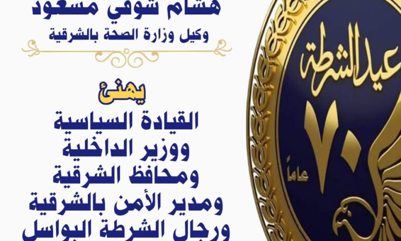 صحة الشرقية تهنئ القيادة السياسية ورجال الشرطة بعيدهم الـ 70