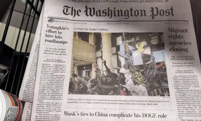 في تغطية بارزة، أفردت صحيفة واشنطن بوست صفحتها الأولى للحديث عن استعادة الجيش السوداني للقصر الجمهوري، واصفةً هذا الحدث بأنه “نقطة تحول استراتيجية” في الصراع الذي تشهده العاصمة الخرطوم منذ شهور.